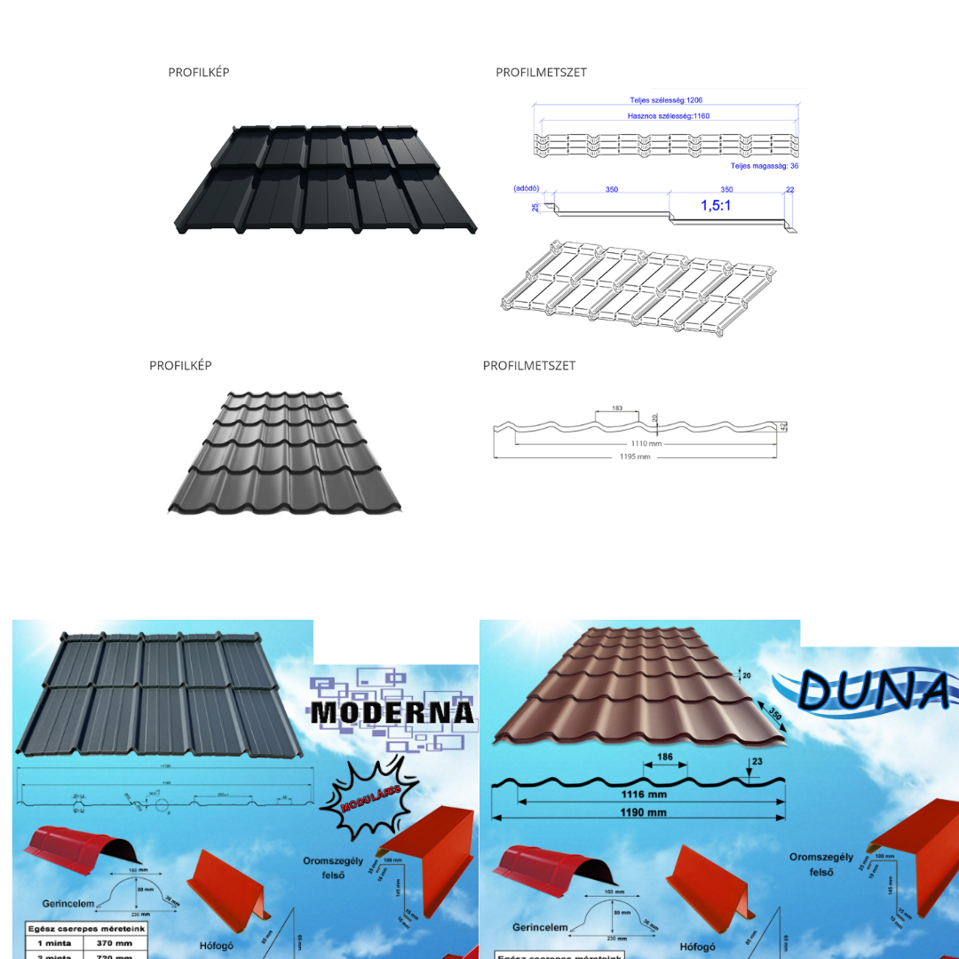 Cserepeslemez 0,4mm/0,45mm vastag